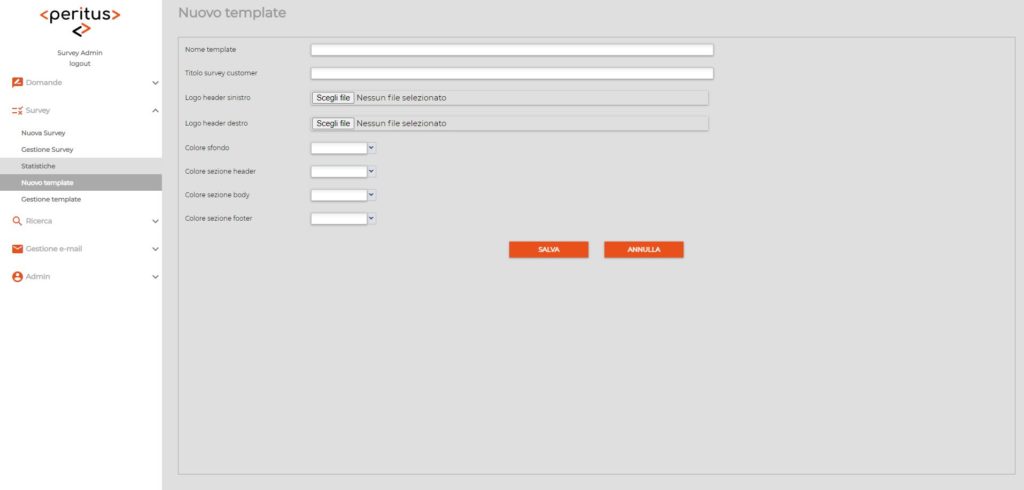 The questions created flow into the survey, which can be configured with or without an invitation. In the first case, the names can be imported via Excel file. If, however, the invitation is not provided, the survey can be completed by clicking on a link, which may be anonymous or not. Surveys can be associated with different types of templates, in addition to a series of operations, such as: the export of statistics, the display of the distribution graphs, the export of the pdf, the cancellation, the display and the export of the answers.